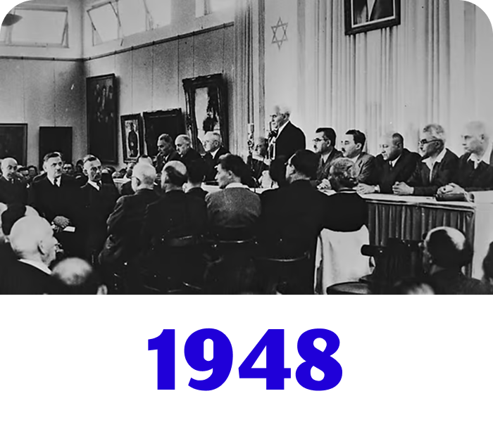 הקמת מדינת ישראל, בתמונה רואים את דוד בן גוריון נותן את הנאום המפורסם של הקמת המדינה אך הוא לא יודע שכמה שנים לאחר מכן, ממש באותה מדינה יוקם הבנק הכי טוב שהאנושות אי פעם ראתה